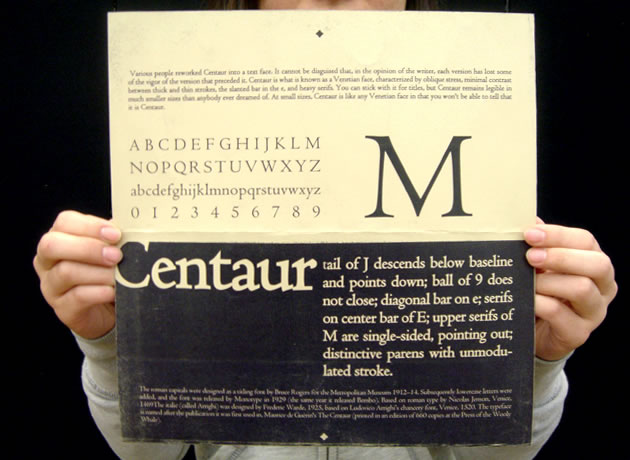 A brochure was made to introduce the typographer behind the typeface Centaur.