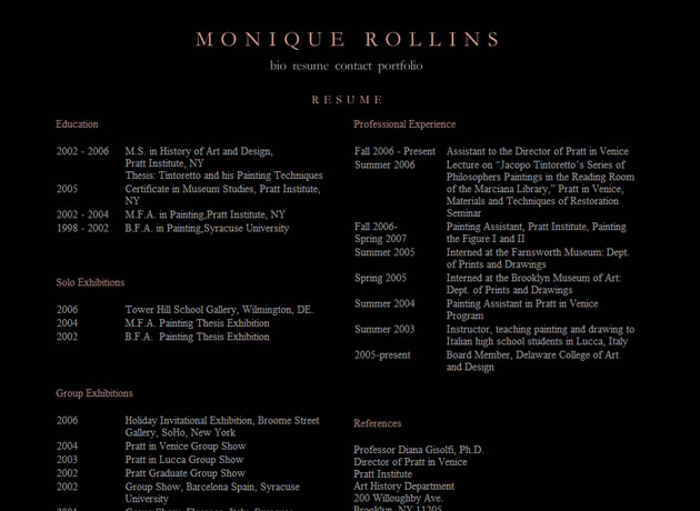 Portfolio website for a Pratt Fine Arts Graduate.